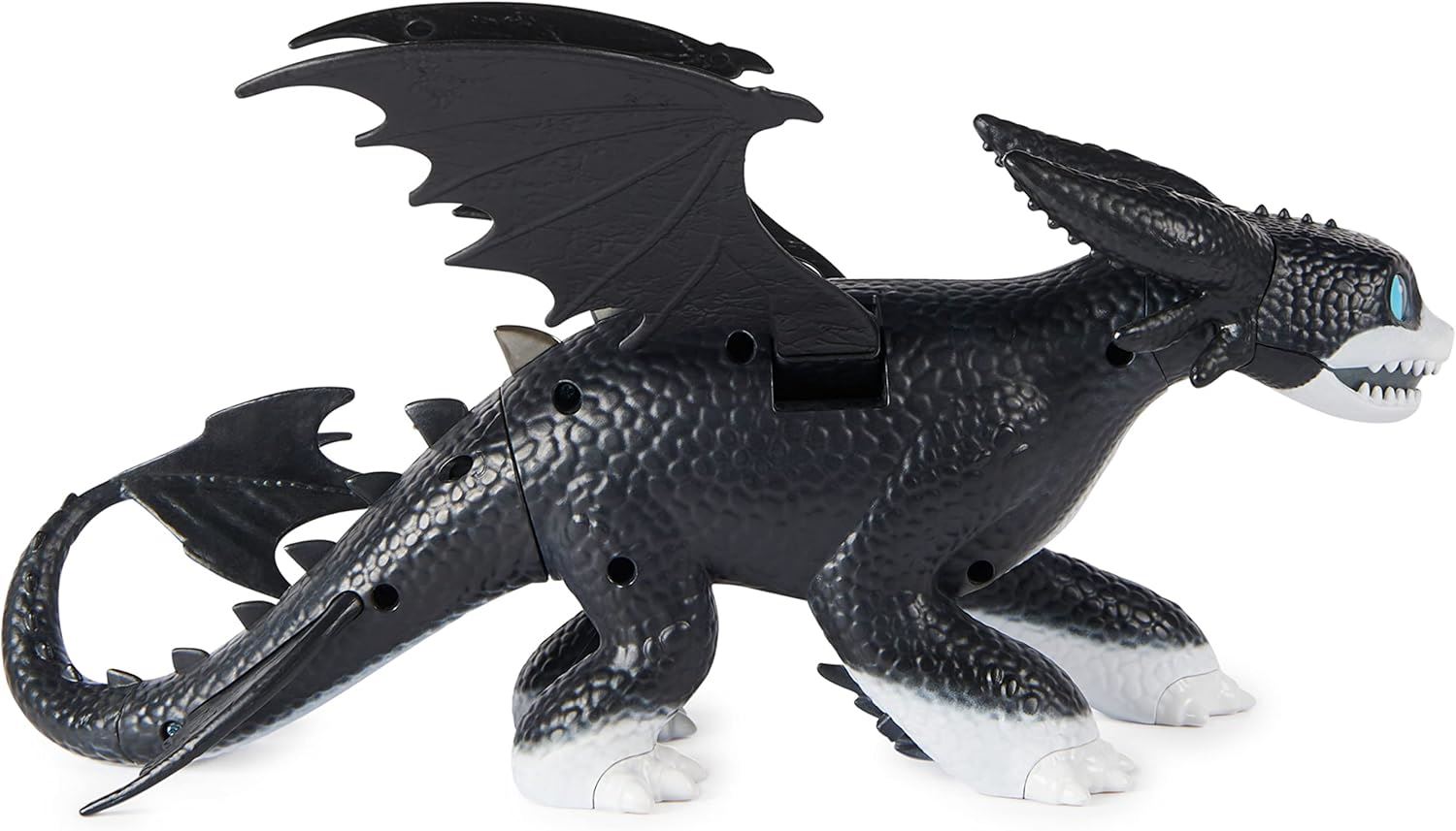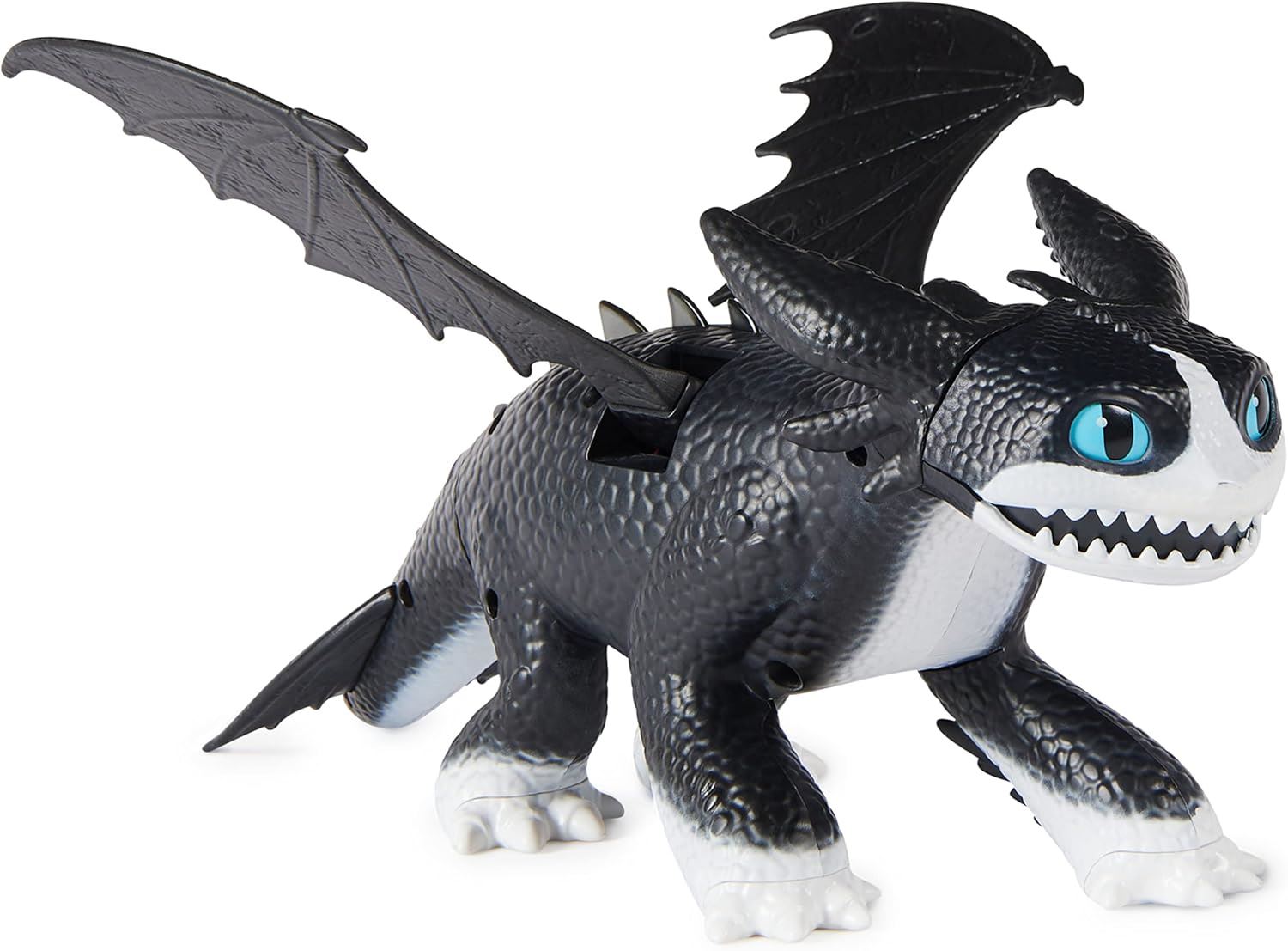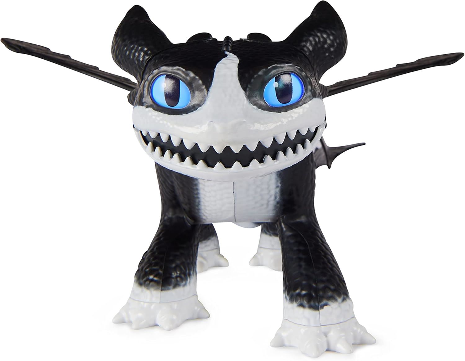 Soar into the next adventure with the DreamWorks Dragons Fire and Flight Thunder Figure. At 30.4cm long and over 20.3cm tall, Thunder comes with lights and sounds to bring the brave dragon to life. Thunder’s detailed articulated wings and dragon scales are just like in the animated series. Lift Thunder off the ground to activate his flapping wings as his eyes, mouth and spine glow. Tilt him up and down for different wing speeds, just like a Night Fury dragon. Watch Thunder glow brighter as you hold him to charge his Plasma Blast. Release the button to let out his fire and save the day. Explore your imagination as you create your own storylines again and again, perfect for pretend play